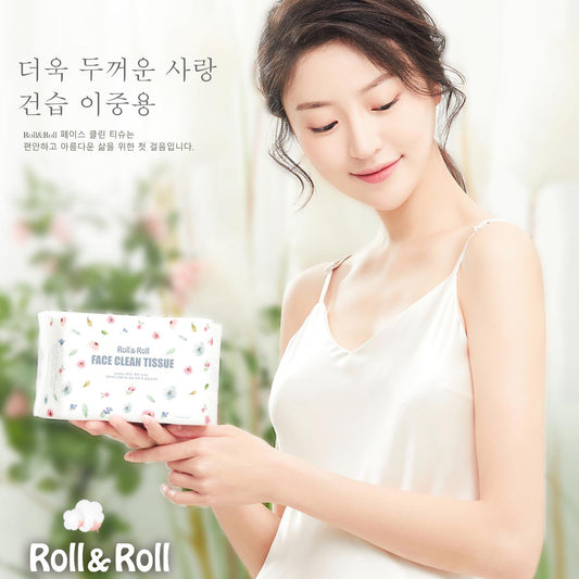 Roll&Roll Soft Face Towels - 100% USA Cotton Dry Wipes, 480 Count Unscented Cotton Tissues for Sensitive Skin, OEKO-TEX Certified Face Towelettes Disposable, Makeup Remover Facial Towels, 6 Pack Soft Multi-Purpose